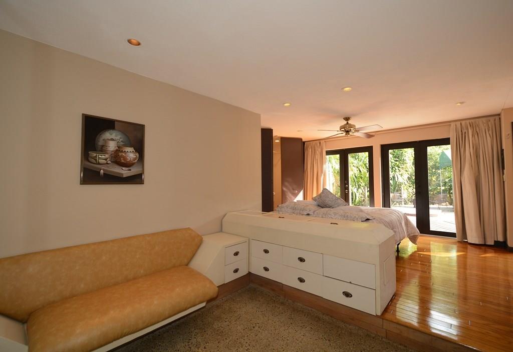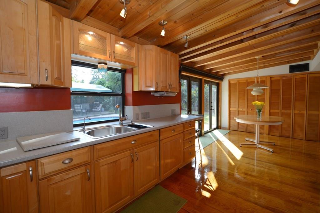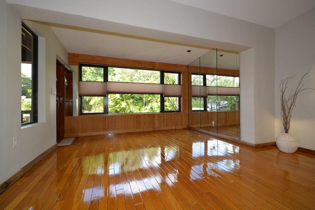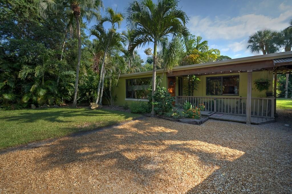 Red Hot Shady Banks! 2 spacious beds and 2.5 baths. Large den w/ .5 bath easily makes 3rd BR. Master w/ his & hers closets, garden shower, sink & water closet; view of private hot tub, swimming pool & yard thru double impact French doors. Built in fish tank, custom storage cabinets. Newer roof, window dressings, & sub zero fridge. Wood burning pass thru fireplace. Refinished wood & terrazzo floors. PGT impact windows, doors & skylights. Automatic gate, turtle pond, covered deck & lush tropical grounds.