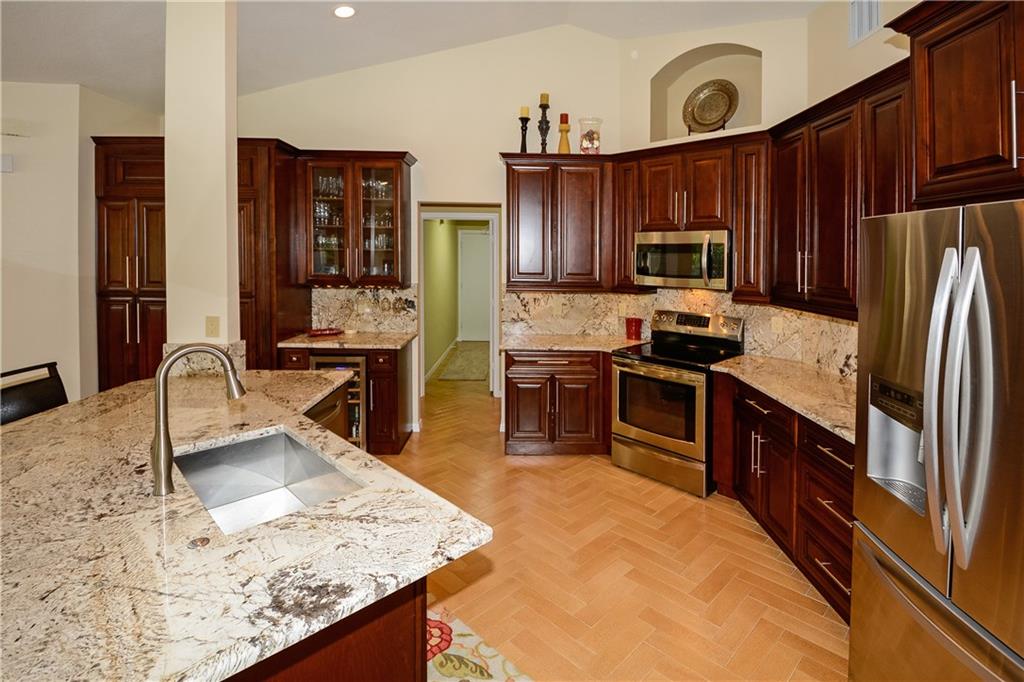 Welcomed & Relaxed is the feeling as you enter this lovely 4/3 lakefront home.The pool/patio is perfect for entertaining,surrounded by a protected Ridge.This home is impeccably maintained with transferrable maintenance contracts.The recently remodeled kitchen features 42" cabinets,SS appliances and a unique granite selection that is carried onto the backsplash.This beautiful kitchen is open to the family room for your enjoyment. Triple split floor plan is one you will want to see. amenities list provided
