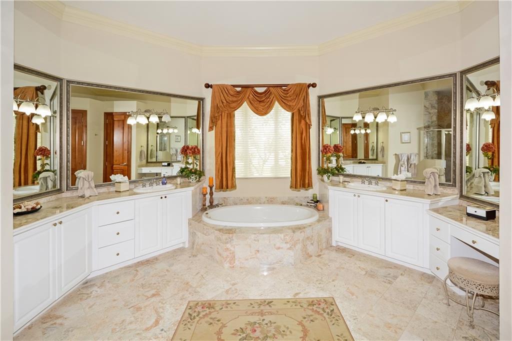 Absolutely the perfect property to call HOME! A magnificent traditional home providing privacy in a truly sensational and peaceful setting, with marble throughout, features a spacious living room leading to an entertainers patio, pool/spa, lush landscaping and golf views; warm and inviting gourmet cook's kitchen; formal dining room, tray ceilings & crown molding throughout. This home has been loved and maintained like a gem, details throughout. New roof in 2009 and gas generator.