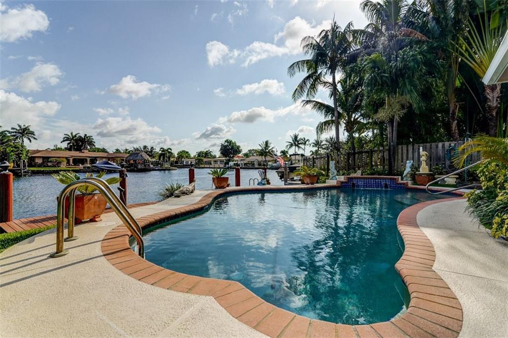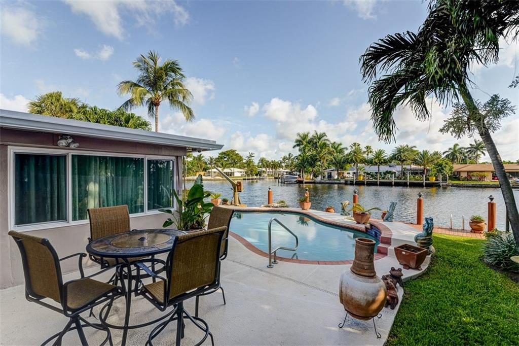 Relax by the pool & enjoy a beautiful relaxing waterfront view located on the South Fork of Middle River. The water is ocean access so bring your boat (or even better, your friend's boat!) This is a true three bedroom, two bath home with bonus room currently being used as a home office. Newly installed impact windows, renovated baths make this a home that just needs you! Homes on the water in this neighborhood rarely come up for sale!6 camera secur system, Stand-by generator, Garage A/c unit.