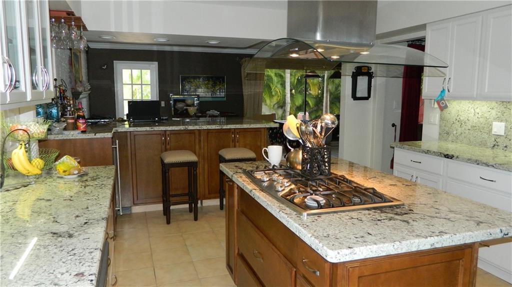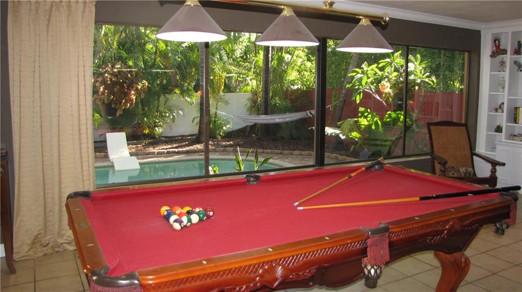 Charming and unique, This spacious home has an open floor plan and is great for entertaining. Oversized kitchen with granite countertop/backsplash, country ceramic sink, double wall oven, gas range. Large bedrooms. Impact windows + shutters for panoramic window facing the pool. Impact glass doors. Built-ins and gas fireplace. 2 A/C's. Alarm system. Tiled in living areas. Laminate flooring in bedrooms. 2-car garage. Saline/chlorinator pool. Tropical feel with mature royal palms.