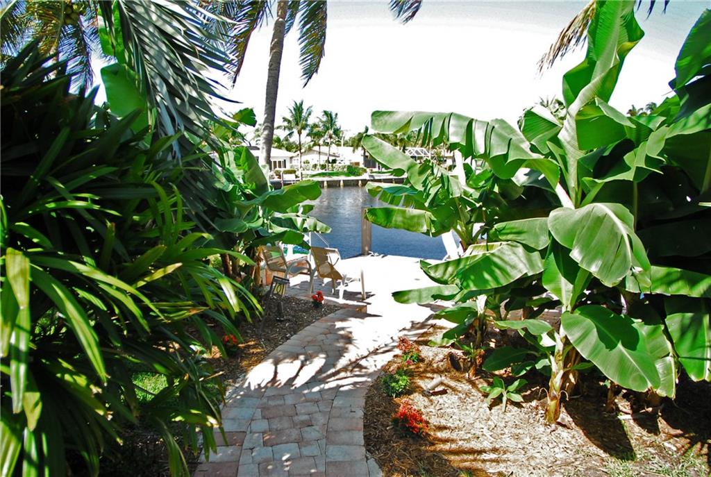 A rare find! A one level, 3 bedroom 3 bath home with 157 ft. of waterfront on an 14,000 s.f. tropically landscaped lot at the juncture of two wide waterways on a dead end street in the Landings. Great open floor plan with wide water, pool and garden views from most rooms. The grounds are beautifully landscaped with lots of coconut palms, mango, avocado, banana trees, and plenty of lawn and green space unusual for the Landings. Floating dock for kayaks, fixed dock for boat, boat lift (as-is)