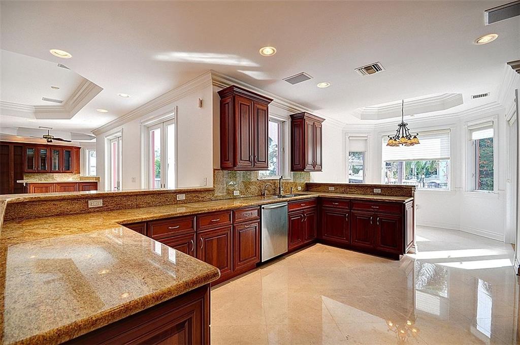 Exceptional gated waterfront estate, exquisitely detailed w/unparalleled quality. This estate boasts slightly over 8,000 total sq. ft & offers a lg floor plan ideal for entertaining and casual living. The culinary kitchen opens to the family rm & custom wet bar all overlooking the pool/spa & patio area. The lavish master suite is a show place with a private sitting rm & 2 oversized walk-in closets. 7 br, 7 fba, 3 cg & fully equipped guest qtrs. Sq ft from builder's plans believed accurate but not verified
