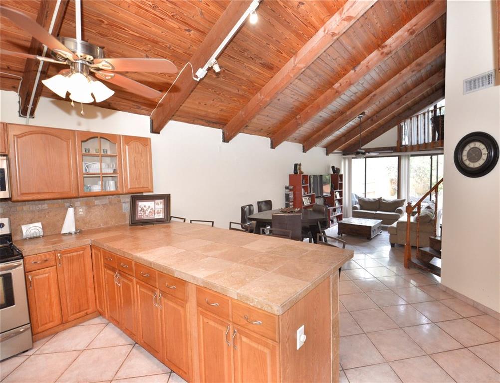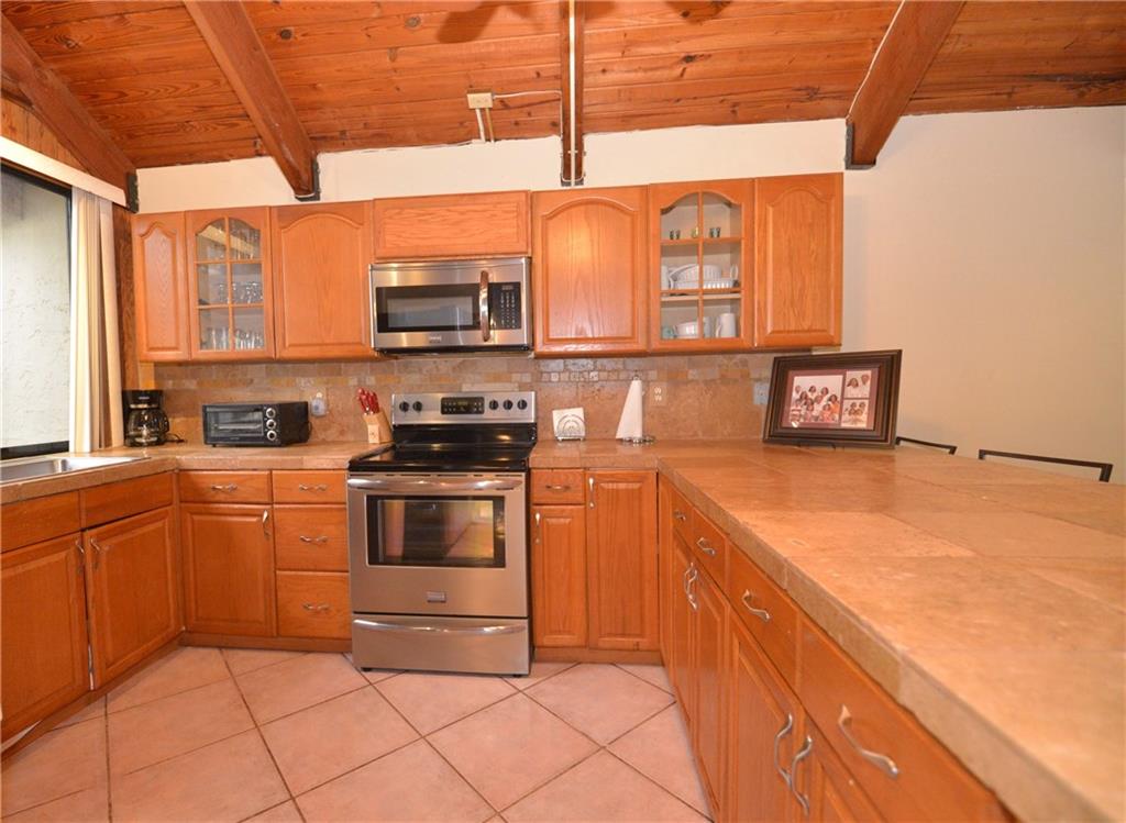Beautifully updated townhome. Soaring 18 ft wood beam ceilings with walls of glass allowing natural light and nature inside. Kitchen and 2 baths updated. Private brick patio with owners private pool. Living spaces flows into the pool area and tropical setting. Master bath with jacuzzi and bonus loft area office. Club house with heated pool,tennis and racquet ball. Downstairs washer and dryer. Pets welcome. 2 parking spaces in front. HOA fee $65 mo. Wont last. Unique property.