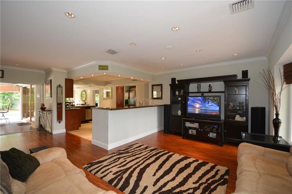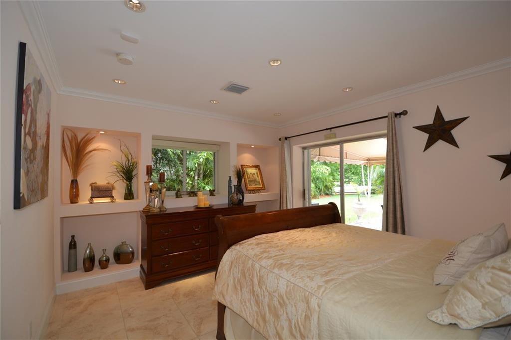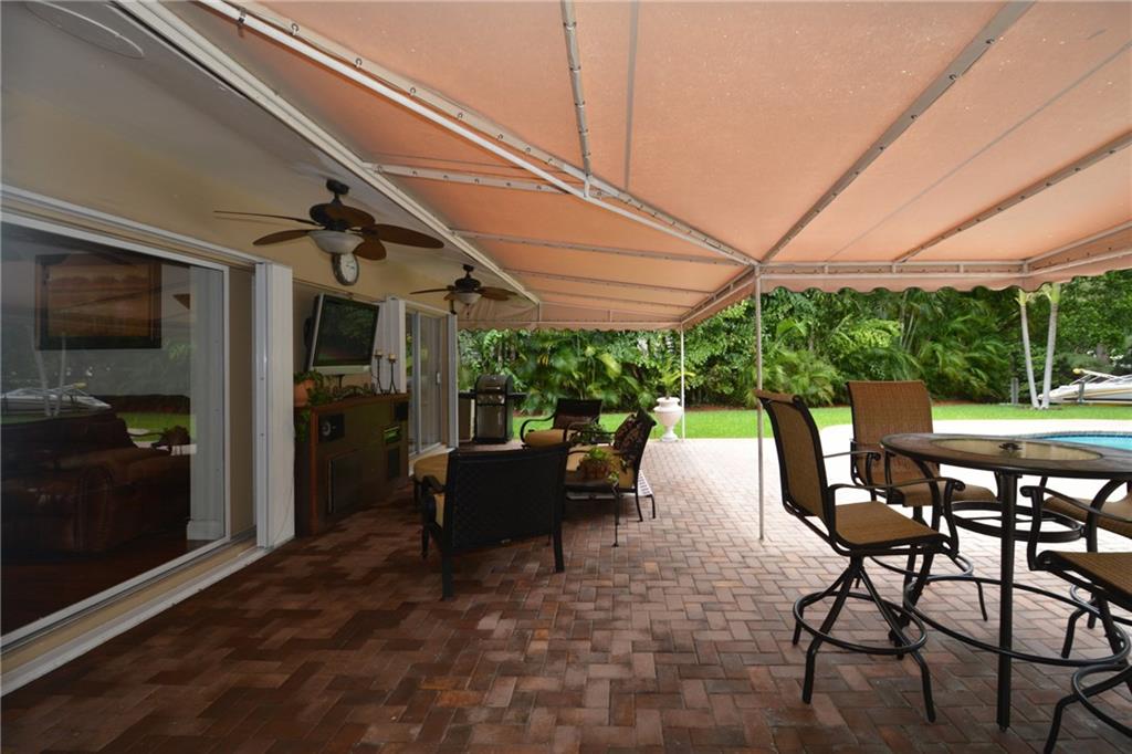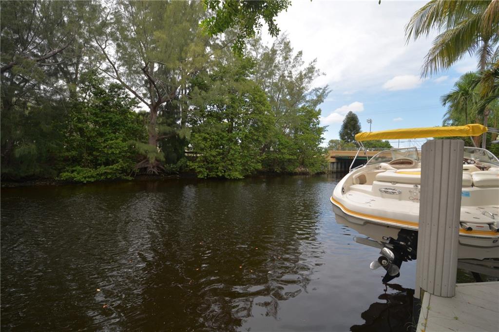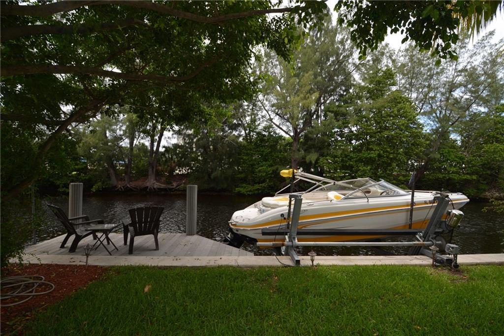 Gorgeous Modern house completely renovated! Open floor plan, living rm with counter bar, separate rm with floor to ceiling sliding tandem glass doors facing very private over sized backyard! Lg master suite with his & hers walk in closets, lg bath with double sinks, walk in shower & Jacuzzi tub. Pre-wired for Cat-5, surround sound & smart house. Ocean access with refurbished boat lift & dock. Covered outdoor living rm with TV & dining area. 3rd bedroom has built-ins instead of closet. Great culdesac area!