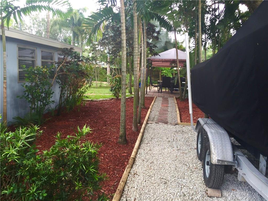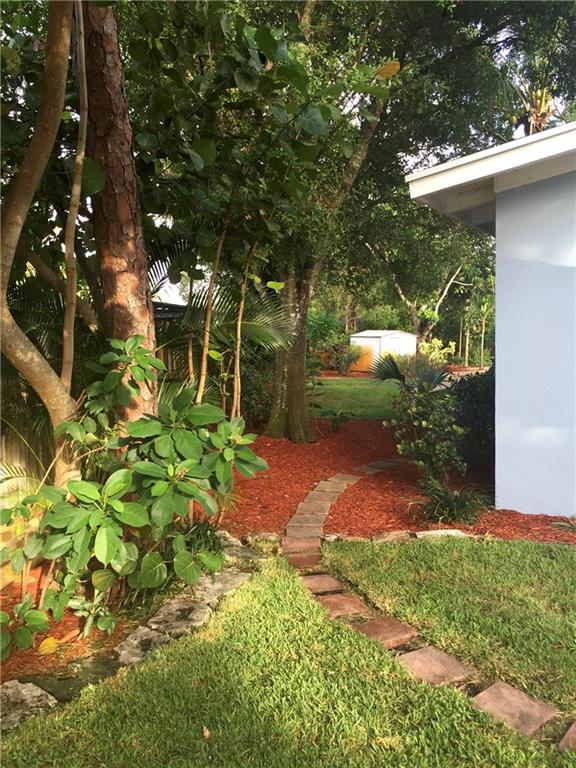 Beautiful Tropical Home. 12,000 sqft Lot w/Fenced Yard. Professionally Landscaped w/ Mature Fruit & Palm Trees. Large Private Driveway w/space for Boat or RV. Boat Landing close by. Open Floor Plan with Wood Beam Vaulted Ceilings. Remodeled Kitchen w/Granite Counter Tops & Extended Breakfast Bar. Enclosed Florida Room, possible 3rd Bedroom or Den. Storage Shed & 2 Patios. New Roof only 2 Yrs old. Don't miss out on this Tropical Paradise in a Prime Location! Close to Beaches, shopping and minutes to I-95.