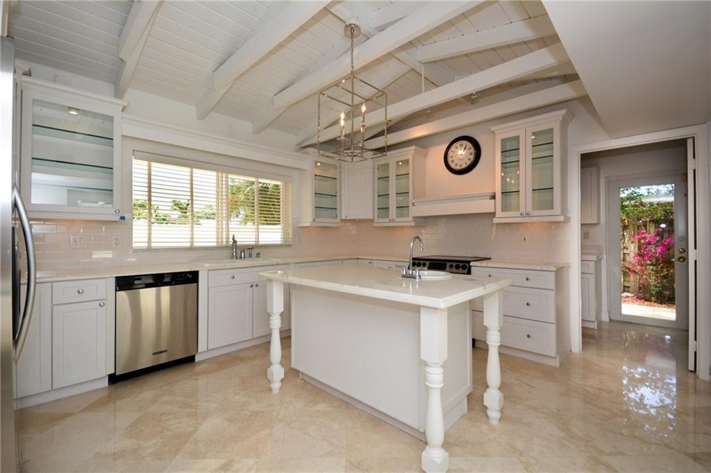 Coastal Paradise. This impeccably remodeled home, nestled between the beautiful blue waters of the Atlantic Ocean and the Intracoastal Waterway, delivers exceptional styling and unparalleled location. Elegant marble floors and beautiful open wood beam ceilings define this fine home. Features a gourmet kitchen with marble counter tops, center island and high end appliances. Remodeled bathrooms. Impact glass doors throughout the house allow for lots of natural light. Huge master suite. Tropical pool & yard.