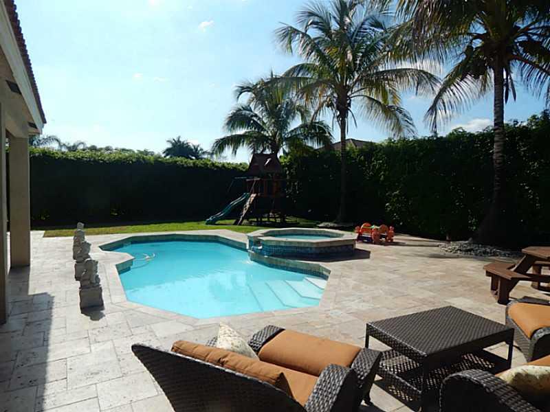 Pleasingly palatial and lovingly maintained premier property. A home with real appeal! Spacious 6 bedrooms 4 baths with so many features. 24x24 porcelain tile throughout the first floor. Brazilian cherry floor on steps and landing, laminate on the second . Popular first floor bedroom and bath. Gorgeous kitchen with granite counter tops, center island and top of the line S/S appliances.Both AC's replaced 2014(16 seer) Secluded, fenced back yard. Heated pool w/ spa,New heater 2014, gorgeous travertine patio