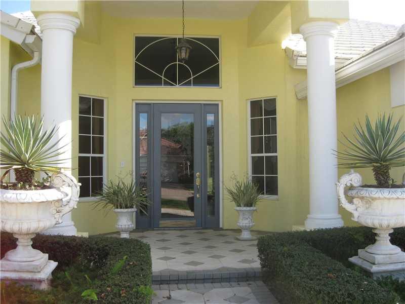 Gorgeous Estate Home. Prestigious Gated/Guarded Golf Community. Open, bright, 13'ceilings, trpl flr pln. $40K builder's optns. 3/3, library, eatnkit, family rm, 2 car gar+ hobby, premium lot, circ drive, 33'x16' pool. Faux paint in MS. H Douglas shades/pl antation shutters. No back neighbors! Home wrnty. Low HOA fees. Top priv/publc schools. Across from NSU/FAU, MIA Dolphins Training Facility, medical facilities, FLL Airport, 595, FL Trnpk, numerous dinning/shopping. Easy drive to MIA/S Beach.