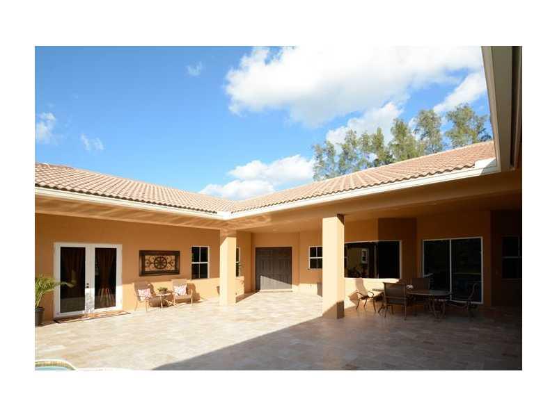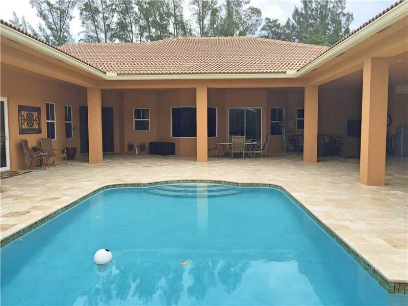 Tucked away in the middle of Davie's Finest Communities. This home features 5 bedrooms 3.5 baths with pool. Courtyard style home, with over 3,000 sf of patio living. Main area is 3551,garage which can have car lift is 556 sq ft, covered entry 492, and covered patio is 1428. House sits on 1.25 acres. Gourmet kitchen with stainless appliances. Seperate Guest suite with it's own entry. A SCHOOLS. Easy access to all highways, 595 and 1-75 and sawgrass. Quiet living close to the city