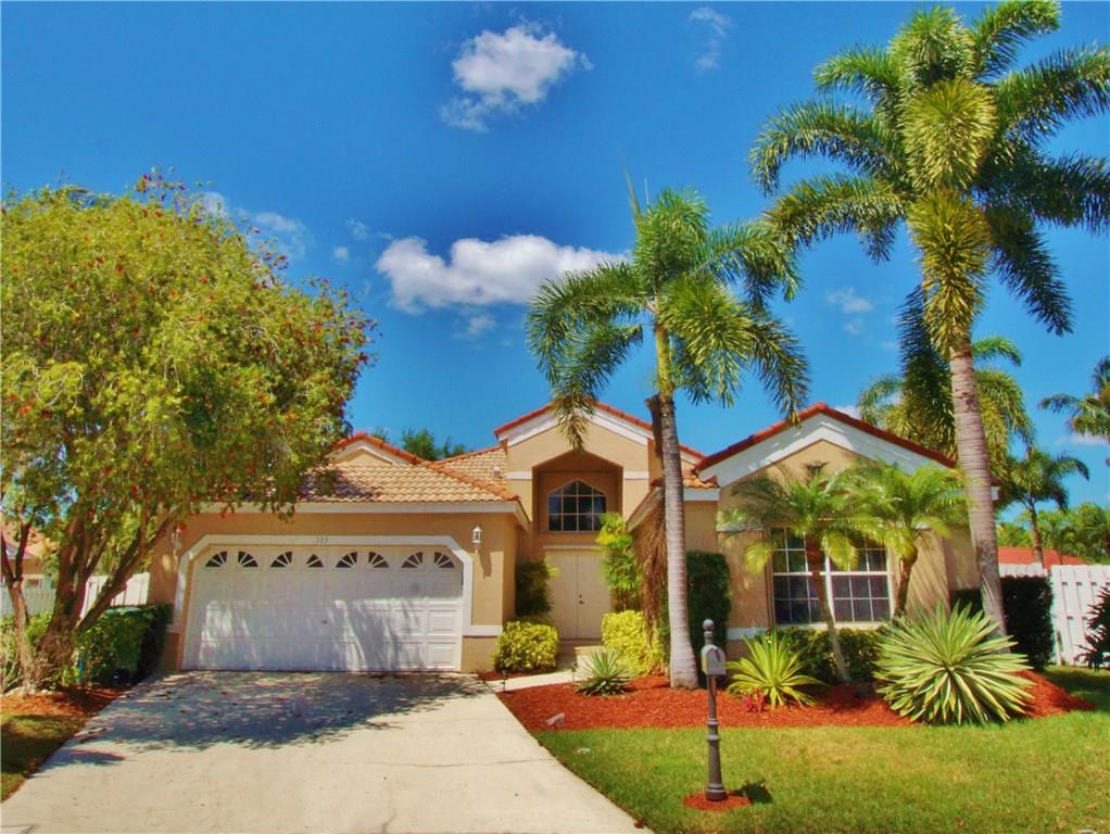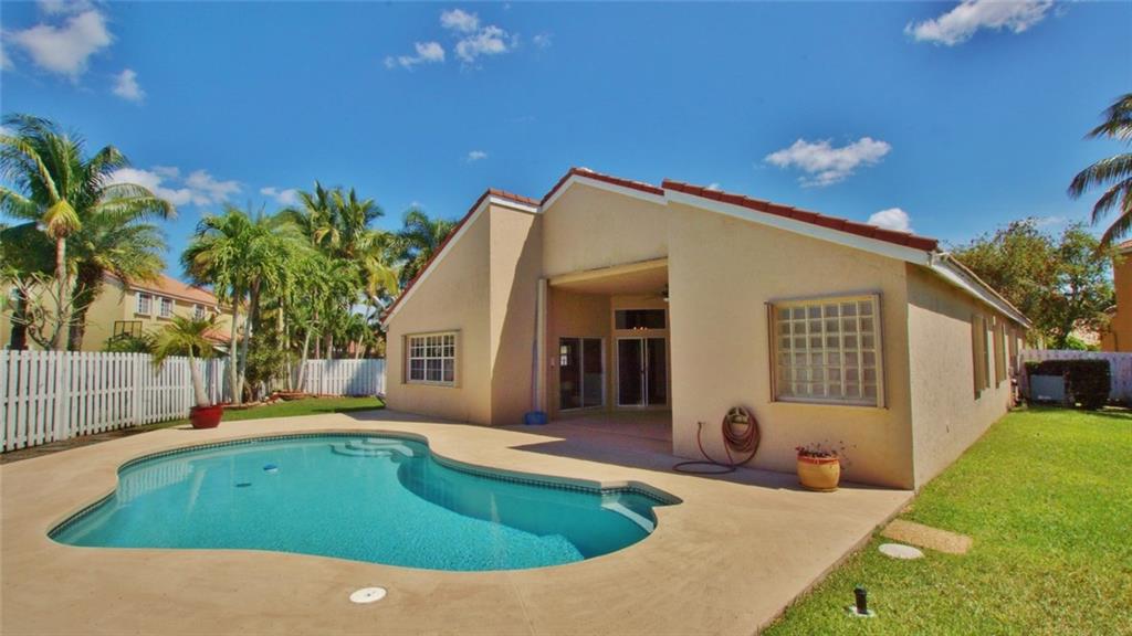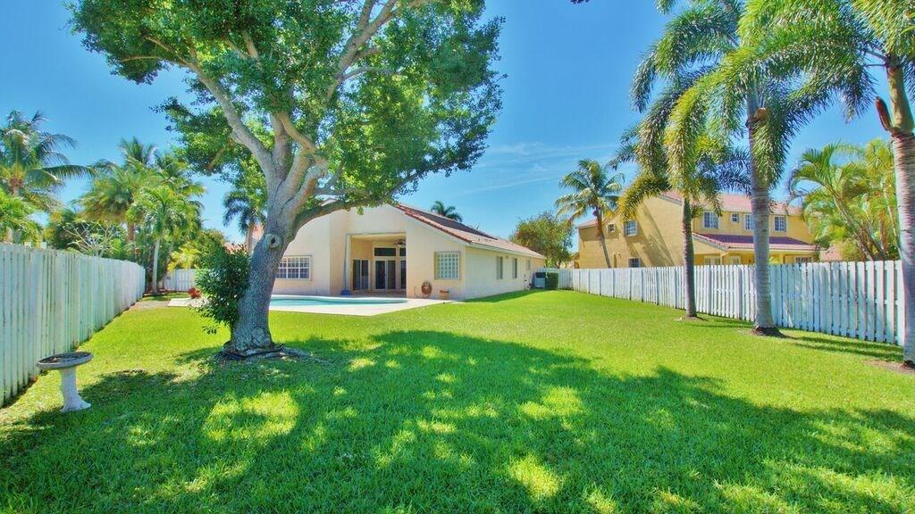 If you love Weston, but need space, this house is for you! Beautiful Bloomfield IV model home in the gated community of North Lakes. Located on a quiet cul-de-sac, this well maintained pool home is situated on a huge pie shaped lot. Features a split floor plan with vaulted ceilings and beautiful wood flooring throughout. Engineered acacia hardwood in the master and cherry laminate in the other bedrooms. New stainless steel refrigerator & dishwasher. Freshly painted, accordion shutters, solar heated pool.