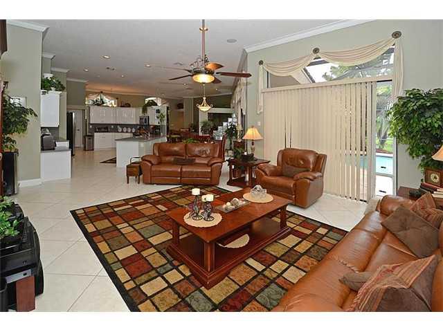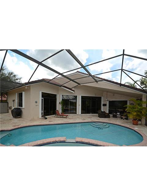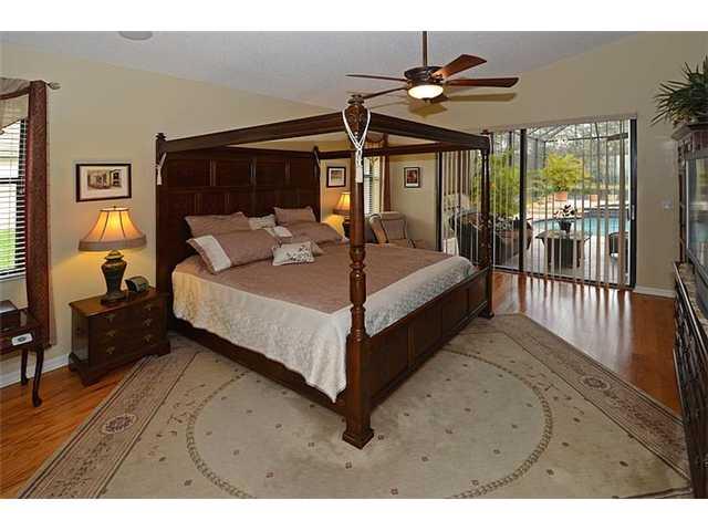 Gorgeous 5 bedroom 4 full bath. Private water view with outside lighting. Screened in pool area with custom pool decking. Stainless Steel appliances. Hardwood floors in master and 2 bedrooms. 20 x 20 tile set on the diagonal in living areas. Hurricane shu tters with ballistic film on windows.Beautiful crown moldings and base boards are just one of the many features of this spacious triple split home.