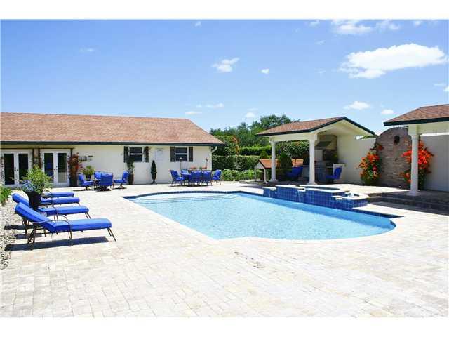 Spectacular home in desirable Majestic Groves! 6000 sq ft home (per appraisal)on 1.25 acres has flexible floor plan with 2 master suites, formal living and dining areas, a 21x20 media room, 21x17 chef's kitchen with high-end commercial appliances, renova ted bathrooms, impact windows and a three car garage. Custom cabinetry in both master bedroom walk in closets.Spacious pool/patio with pavers feels like a resort.Manicured lawn and gardens.LOTS OF upgrades. See pictures and video tour.