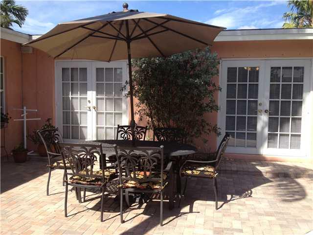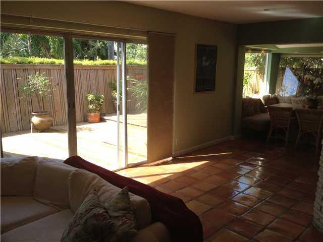 "SHANGRI-LA" Tastefully designed home in quiet and secluded neighborhood. This home is great for entertaining. Foyer entrance leads you to open and bright living room area with sliding doors to beautiful and completely private wooden front deck. Open kit chen with s/s appl. and snack counter/bar. Energy efficient,front load washer & dryer. Updated bathrooms with lots of storage. Office/guest room offers built-ins. French doors to gorgeous cascade-pool/spa area, paved patio and bar w/granite countertop.