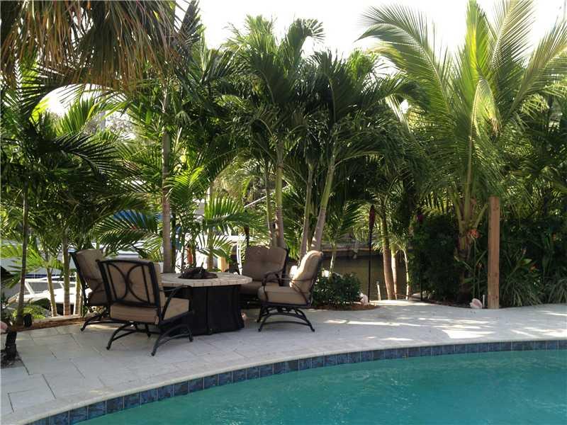 Beautiful waterfront pool home facing a 5+ acre park. All remodeled - Newer roof, impact windows& doors, polished Terrazzo & concrete floors, large open kitchen w/ breakfast bar w/ park view . Tropical pool w/ waterfall surrounded by lush foliage.3 bedroo ms, 2 baths, fireplace, sound system, insulated ceilings, French doors in master bedroom overlooking pool area. 60ft of waterfront- no fixed bridges. 2 person cedar outdoor shower, screened porch, outdoor movie screen. See attached list of improvements