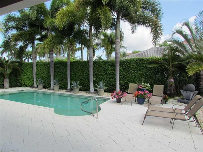 Beautifully upgraded home in Savanna with lush landscaping & pool. Tons of upgrades which include custom glass front door, custom lighting, window treatments throughout, plantation shutters & Accordian hurricane shutters. Kitchen has stainless steel appli ances & built-in pull out drawers in the pantry; LED lighting throughout. Master bedroom boasts crown molding & window treatments which opens up to pool with sliding glass door. Closet is fully built out. Master Bath and Guest Bath fully renovated.