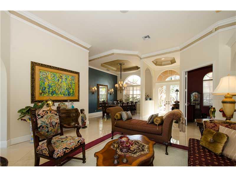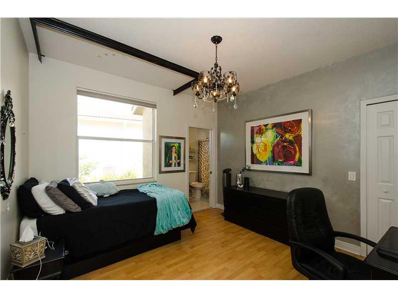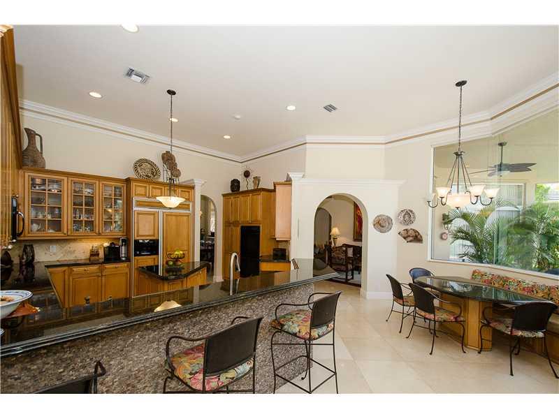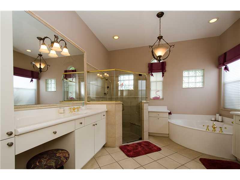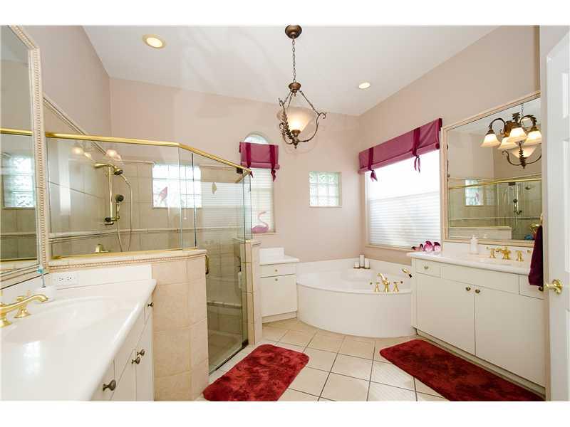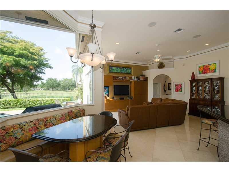 Spacious Weston Hills six bedroom, five full and one half bath home featuring triple split plan with separate in-law quarters and maids room. Master bedroom has a separate sitting area, wood floors, and his/her walk-in closets. Formal living and dining ro oms, eat-in kitchen overlooking family room with views of the 9th hole, crown molding throughout as well as Hunter-Douglas window treatments. Gated community and A-Rated schools.