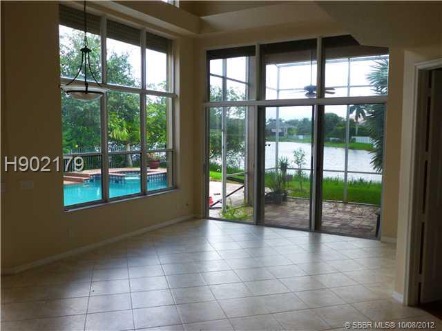 For The Growing Family! Spacious two-story pool & waterfront home in desireable golf community. 2 car garage also has golf cart/motorcycle/storage area.This large executive home is on a quiet cul du sac street, with lakefront privacy. Electric shutters, b uilt in BBQ, separate screened bbq area plus unscreened poool/jacuzzi. Heated pool. High ceilings. Great schools & neighborhood - 24 hour security gate