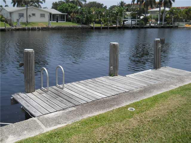 Immaculate! Updated home on wide canal w/dock, one fixed bridge, great ocean access. Gorgeous kitchen, custom-made cherry wood cabinets w/ glass-inset doors, granite counters & backsplash, top-of-the-line appliances, updated bath w/custom vanity, crown mo lding, beautiful high-end lighting & paddlefans, highly polished terrazzo floors, large util rm with newer washer/dryer, hurricane impact windows & doors, accordian shutters, new blinds & valances, new Hi-Eff A/C in 2005, new curved tile roof in '97