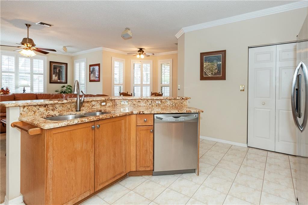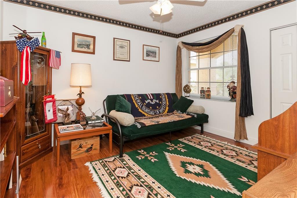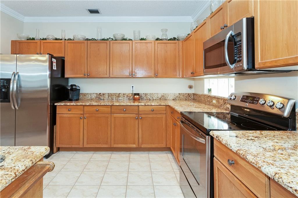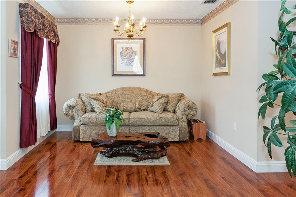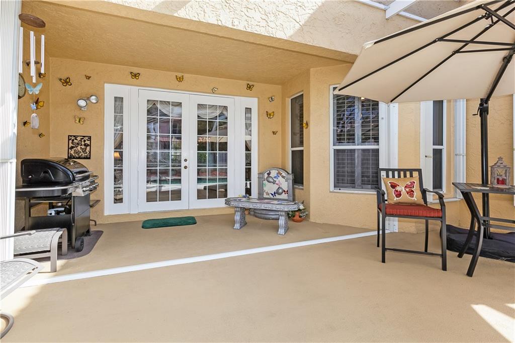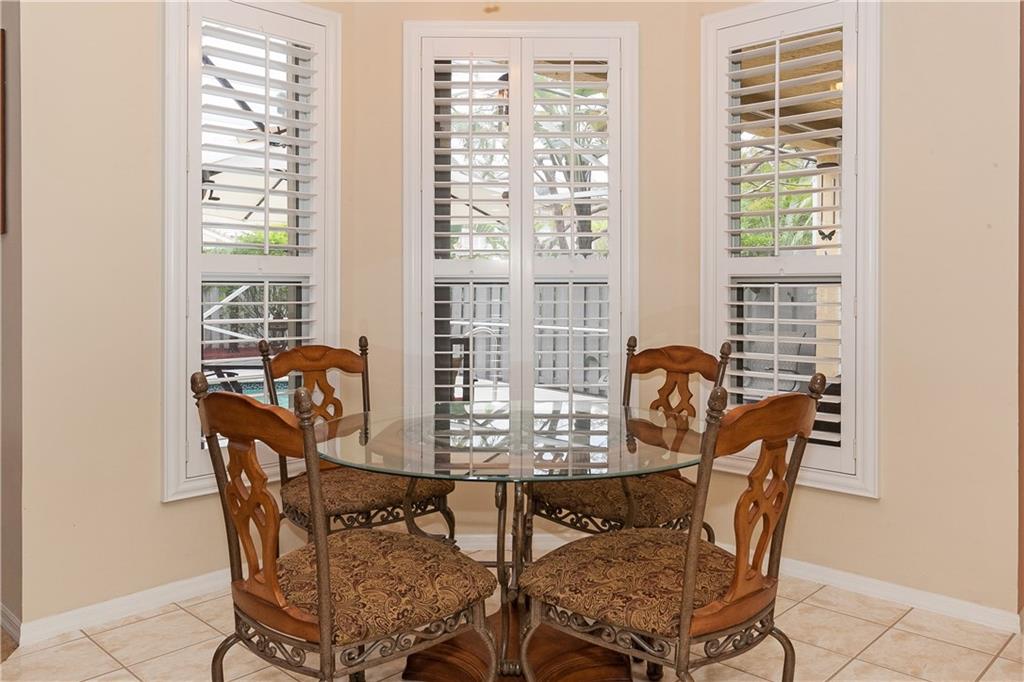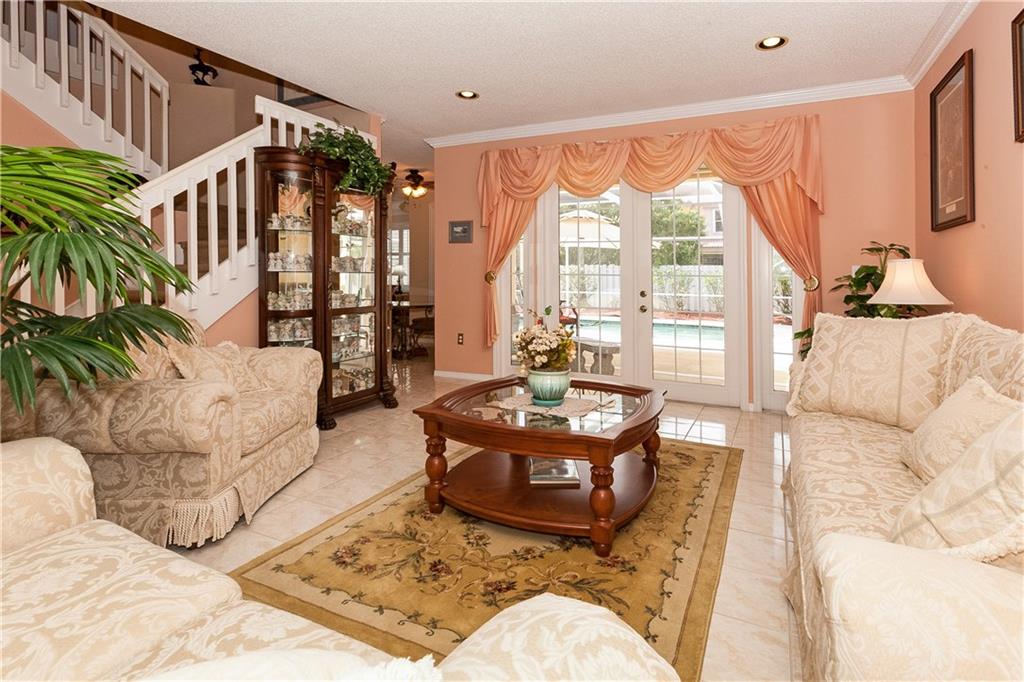 This tastefully decorated "Grande" home is true to its name. This spacious home boasts a screened in freeform pool w/large open & covered patio. Remodeled kitchen has wood cabinets, granite countertops, & stainless steel appliances. Large family room & breakfast area. One full bedroom & bathroom downstairs. Oversized master bedroom w/sitting room, double walk-in closets & remodeled bath. 2nd floor features new wood laminate flooring. Plantation shutters, crown molding, accordion shutters & lots more!