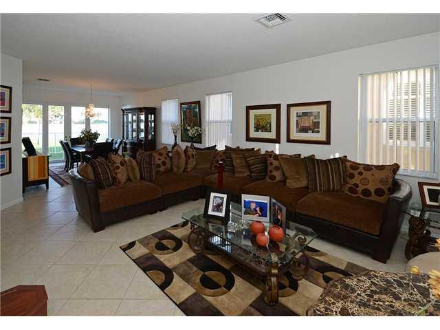 Huge 5/3 w/3 car garage. The largest lot in Riviera Isles w/no neighbors front or back. Enjoy mile wide lake views from almost every room. Model perfect w/new dark hardwood floors upstairs & tile floors downstairs. Upgraded kitchen features granite,stainl ess appliances,wood cabs,large pantry & convection oven. Don't miss the volume ceilings,French doors,intercom,oversized Master walk-in & large Master balcony.Long driveway fits up to 6 cars. A 5 star gated community w/ pool,tennis,tot lot,gym,+ lots more!