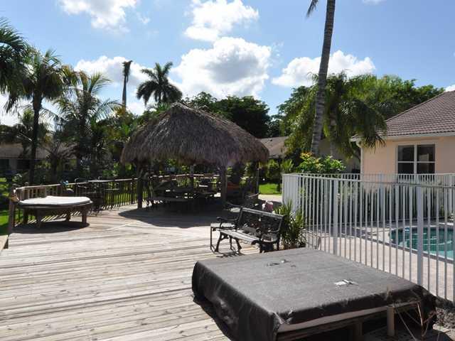 AMAZING OUTDOOR LIVING, BEAUTIFUL BACKYARD WITH TROPICAL LANDSCAPING 1200 SQUARE FOOT DECK WITH THATCHED TIKI HUT FOR RELAXING WITH FULL ELECTRIC AND CABLE!!! INSIDE IS AN OPEN SPLIT FLOR PLAN WITH FORMAL LIVING AND DINING ROOMS. EAT-IN KITCHEN, LARGE MAS TER WITH HUGE MASTER BATH!! EXCELLENT HOME FOR ENTERTAINING!!!