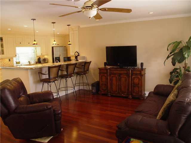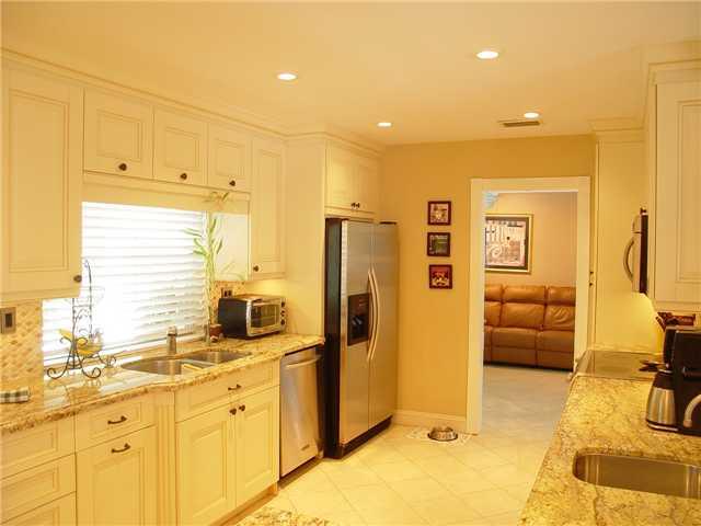 Beautifully updated Coral Ridge Isles 2BR/2BA offers open concept living with rich Cherry wood floors, a custom-design kitchen with breakfast bar, granite counter tops and stainless appliances. A spacious Family room has custom built-ins with crown moldin g and recessed lighting throughout. French doors from Master, Dining and Family room open to an L-shaped covered terrace overlooking a sparkling pool and private, park-like yard. Formal gardens and circular drive lead to a welcoming front porch entry.