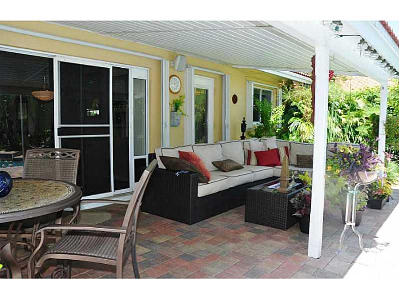 Remodeled and ready to move in! Beautiful park like gated back yard with heated (gas) salt water system pool, pavered patio with overhang for outdoor living room! The gardens, foliage, landscaping & landscape lighting are amazing! Open concept updated kit chen with granite, SS appliances & breakfast bar! Accordion shutters, separate laundry rm/lot of pantry space, recessed lighting, crown molding & wired for surround sound speaker system! Walk in closets, tile & wood flooring! Just perfect!