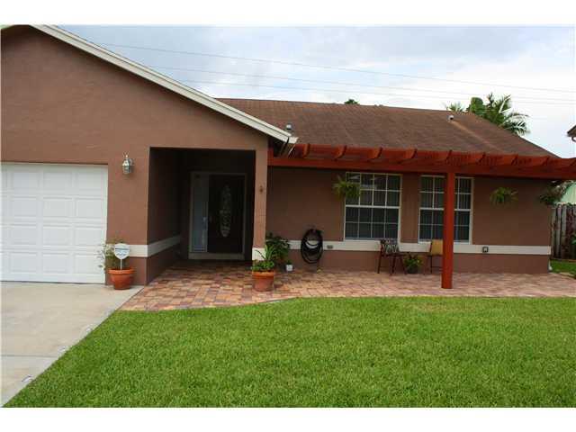 Gorgeous home completely updated! Wood laminate floors, granite counters,oak cabs, stainless new fridge, recessed lighting, alarm, new tankless water heater, new ceiling fans, Lg New Chest Freezer in garage, "Organized Living" closets, updated bathrooms, new W/D, permitted new addition: large FR! TIKI HUT w/huge bar, lights, speakers, wired for TV: perfect for South Florida living! Brick Paver rear patio, outdoor landscape fountain, privacy fence, impact windows, 2 zone A/C. Newer Roof. 2CG plus carport!