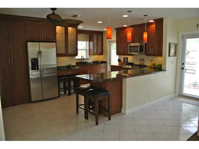 Gorgeous private home in most desired area of Poinsettia Heights. All new impact windows,french doors and 8' sliding glass doors give you bright and beautiful views of this home's tropical landscape and spillover pool w/spa from every room. Newly renovate d large gourmet kitchen w/stunning quartz countertops, s/s appliances, oversized composite granite sink and natural gas stove. Open floor plan great for entertaining, screened back porch, tankless H20 heater, renovated bathrooms, new travertine driveway.