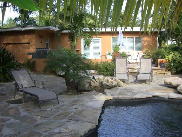 TROPICAL POOL HOME, NICELY UPDATED! SOUTH FLORIDA LIVING AT ITS BEST. BACKYARD HAS LUSH TROPICAL LANDSCAPING, LAGOON POOL WITH BEAUTIFUL FLAGSTONE PATIO, FIRE PIT, LARGE PATIO BAR AREA - PERFECT FOR ENTERTAINING! HOME HAS OLD FLORIDA CHARM, WOOD FLOORS, V AULTED CEILNGS IN LIVING ROOM & KITCHEN, RENOVATED KITCHEN W/ SS APPLIANCES & GRANITE COUNTERTOPS, LARGE FAMILY ROOM, FIREPLACE, MAIN BATHROOM HAS SLATE TILE, BUILT-IN CABINETRY IN OFFICE, WHOLE HOUSE NATURAL GAS 25K GENERATOR, FRONT PORCH.