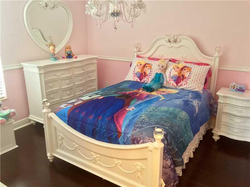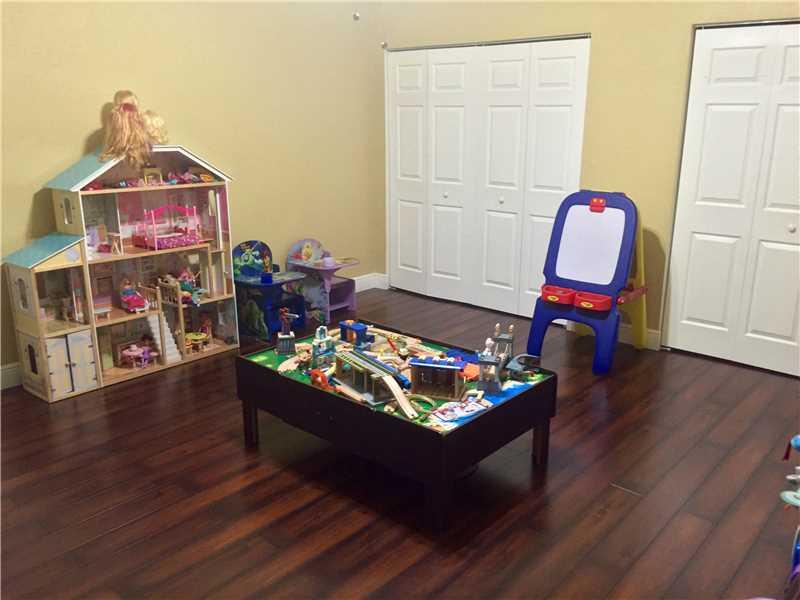 Immaculate 5 bdr,3 fbath, single family home in the man gated community of Sunset Falls. Stainless Steel appliances with granite kitchen counter tops and wood cabinets. Tile downstairs and hard wood upstairs. Impact windows all around, fresh new paint ins ide and out. Crown moldings, California wood cabinets in closets. New washer & dryer. 3 car garage with the 2 car converted into playroom and 1 car garage still available. Large patio with new pavers, playground included. Roof recently waterpressured.