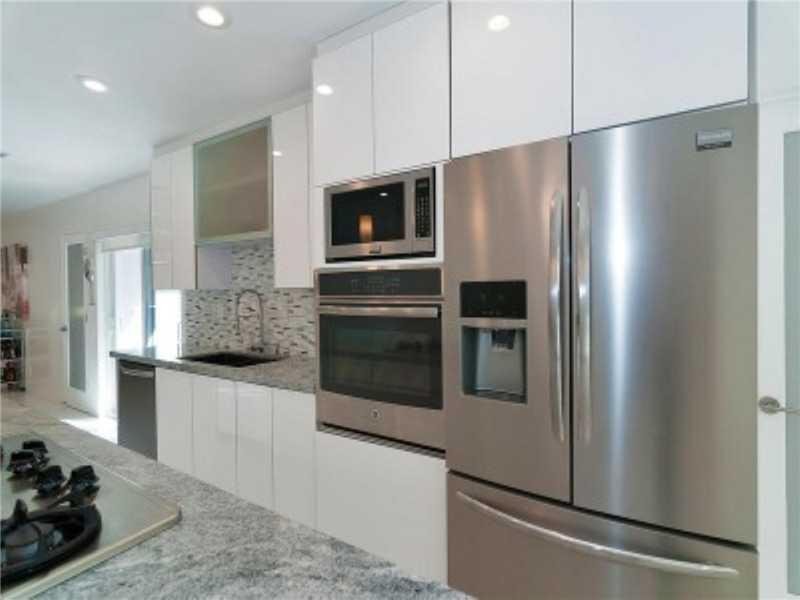 Home features an open floor plan leading to a custom built one of a kind kitchen with a 13 foot long marble top island with bountiful custom drawers and cabinets, glass tile back splash, 5 burner gas stove, built in led lighting and a built in wine cooler . Whirlpool Professional stainless steel appliances. Brand new Hurricane and Impact Resistant windows on every window and door in the house. Ultra sleek glass floor tile throughout house. House features a large Family room.