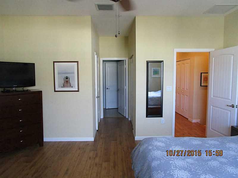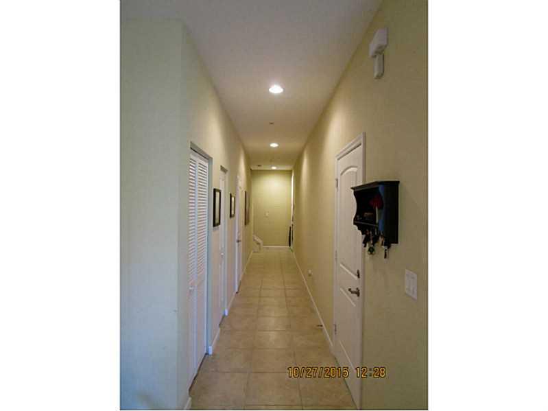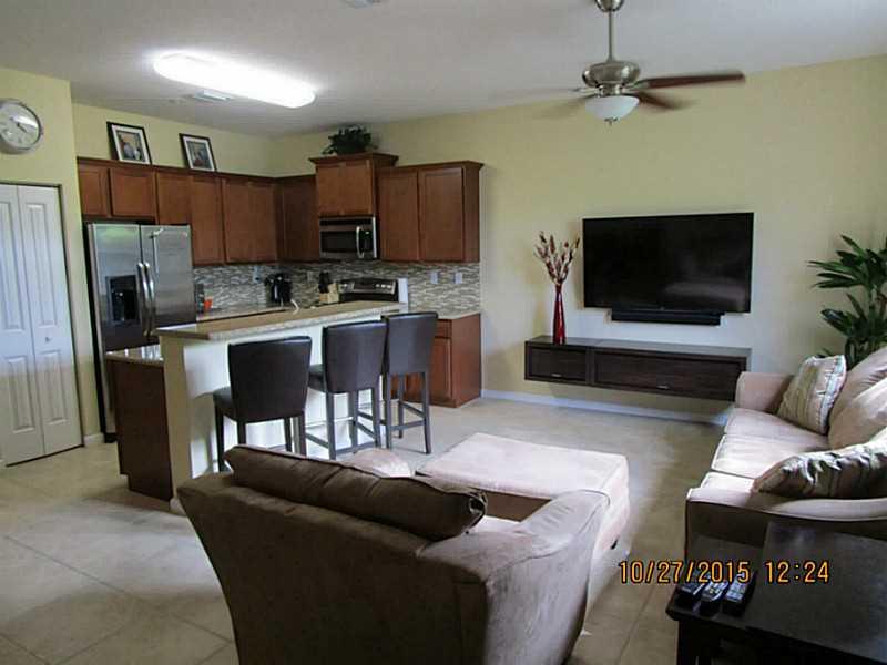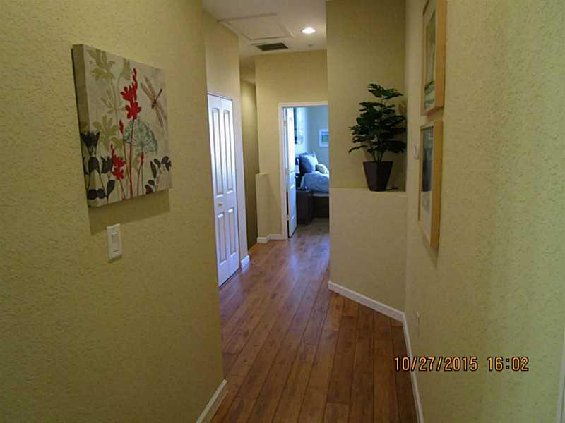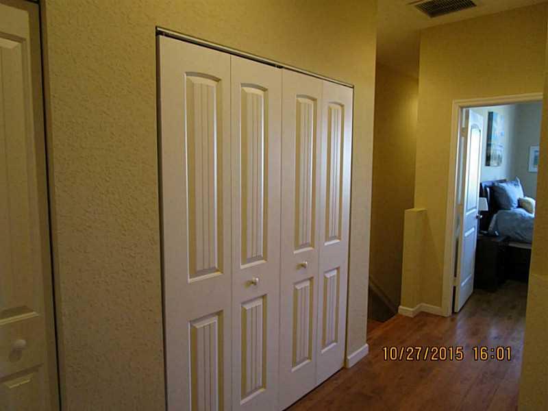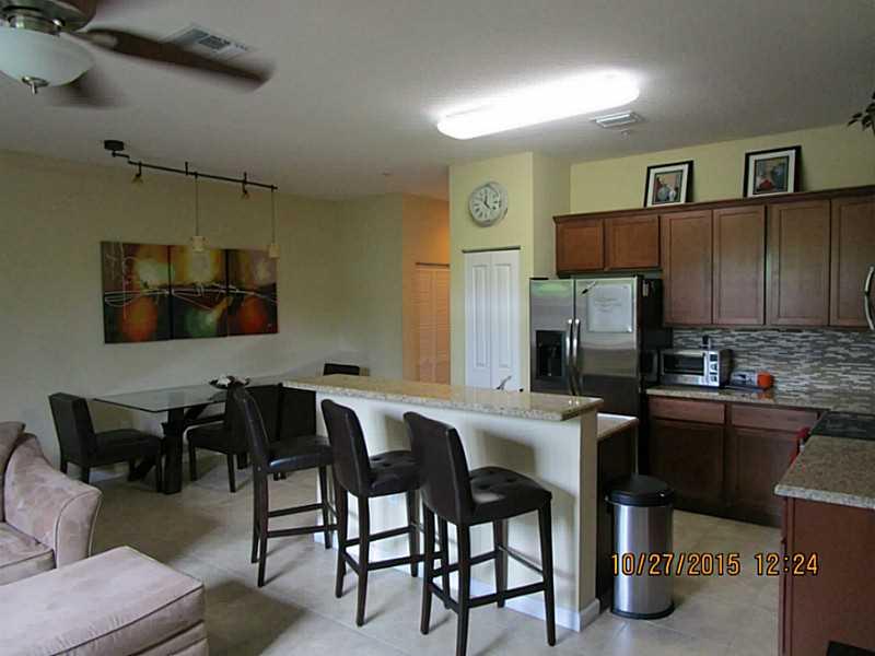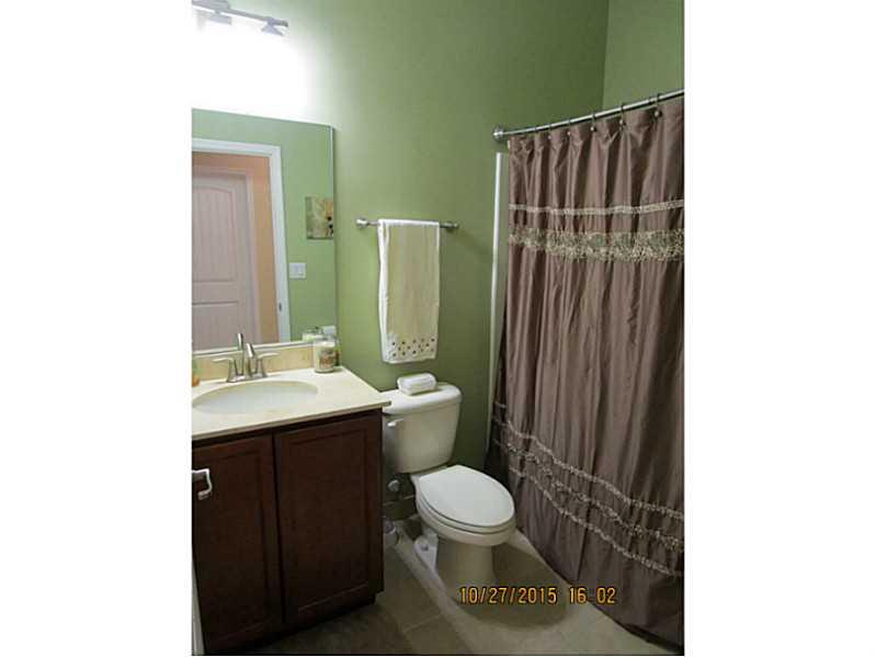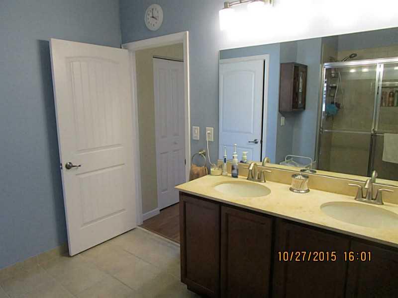 Spacious 3 bedroom, 2.5 bathroom townhouse built in 2014. Dramatic 9' ceilings, upgraded lighting, tile flooring on the first floor and laminate flooring on second level, granite kitchen counters, stainless steel appliances, marble bathroom counters, lar ge master bedroom with walk-in closet, master bathroom with 2 sinks, shower and separate water closet. HOA fee includes cable and internet service. Home is wired for ADT security. Community has a walking path, pond, pool, exercise room and club house.