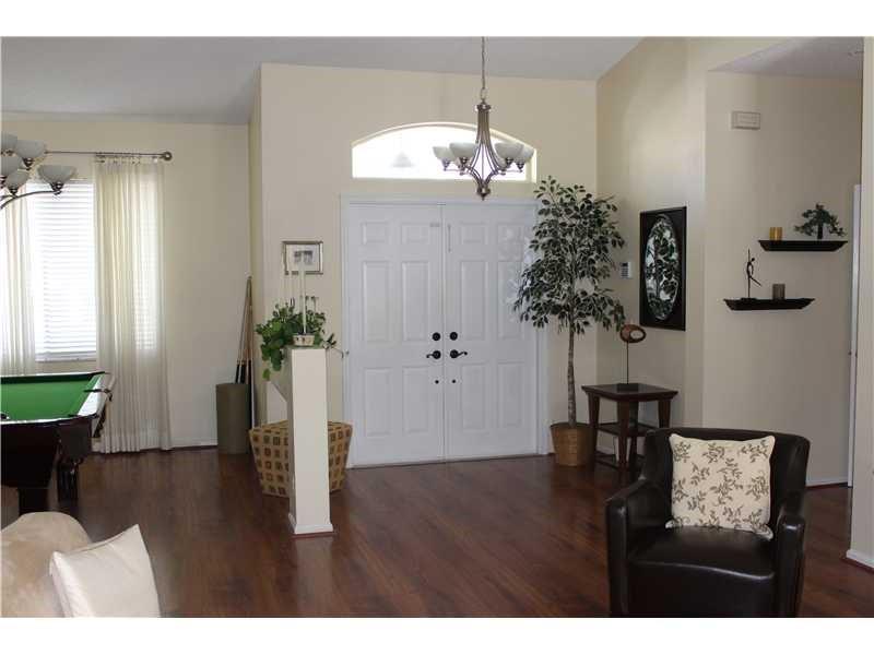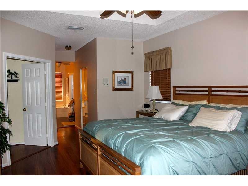 Modified 5 bedroom Belwood model features 4 full bathrooms! Centrally located, this small community is gated and within walking distance of shops and restaurants in the Town Center. Laminate wood flooring in most of the living areas with tile in two of the bedrooms. Roof is only 6 years old. Master bedroom has 2 walk-in closets. Master bath w/dual sinks, roman tub and separate shower. Upgraded kitchen with tumble-stone marble countertops and backsplash. Huge screened patio. Fridge in garage excluded
