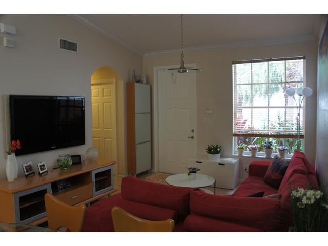 Beautiful 3bed 2bath 1car gar townhome in gated comm, subdiv with loaded amenities, tropical landscape welcomes you into living dinning rm combo, spacious kitchen looks onto outside dinning and patio area, hallway with desk area not visible to living ar ea, both guest bdrms with ample closet space, hallway bathrm with beautiful stone tile, master suite with lots of natural light and closet space, master bath with dual sinks and spa tub/shower combo, Premium cable and alarm incl in HOA. Kids club incl.