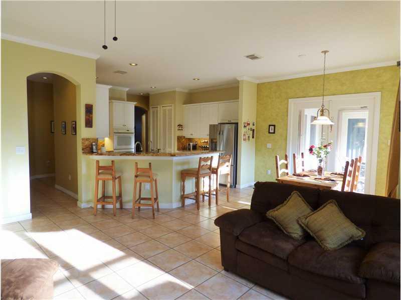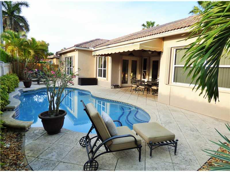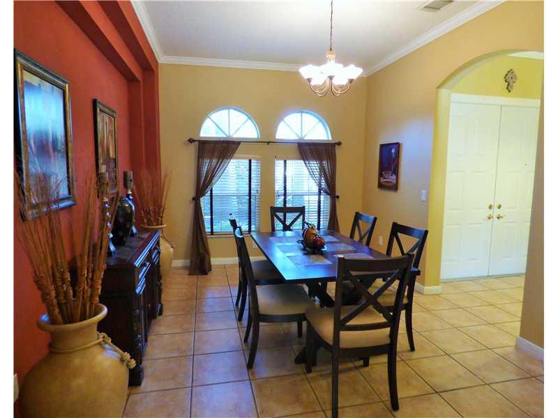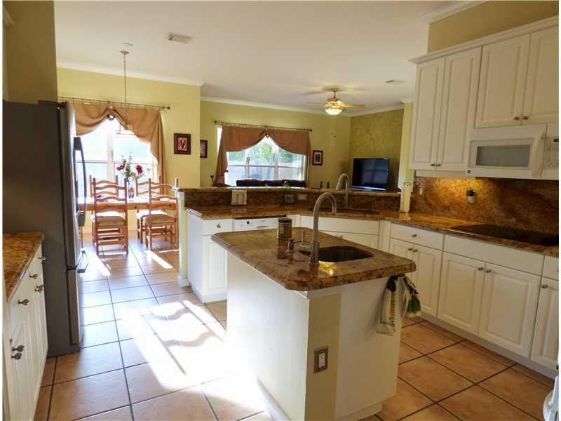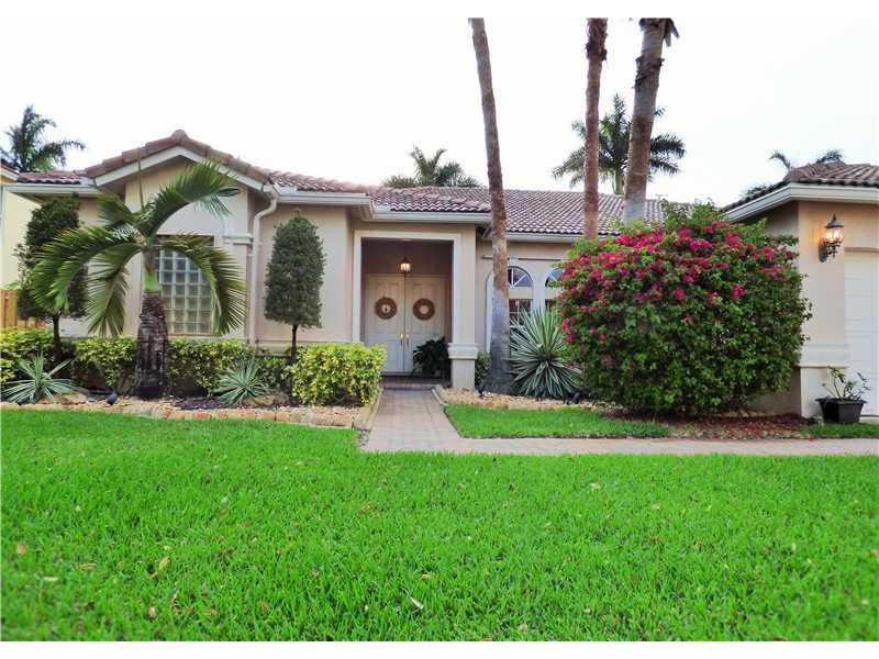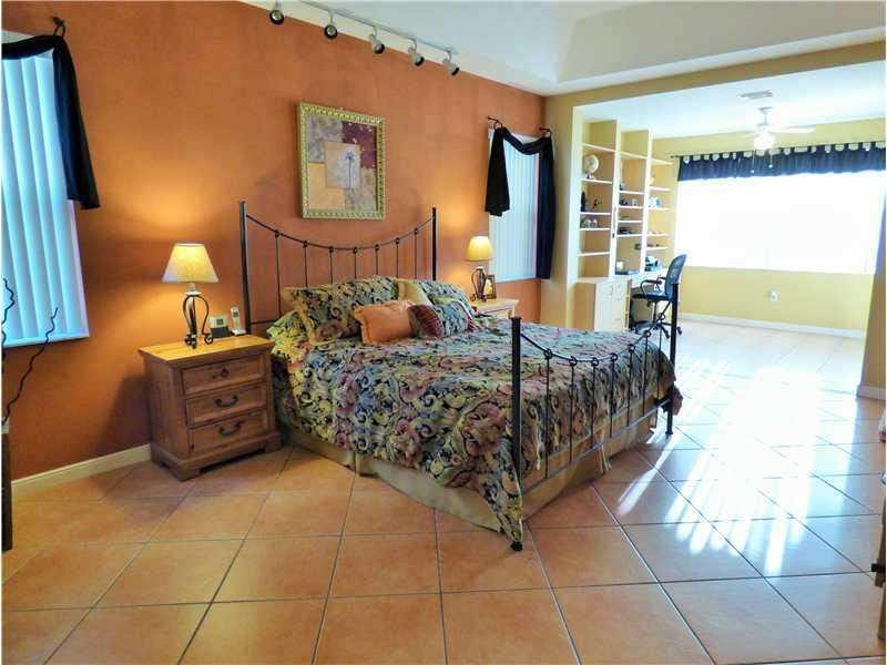 WELCOME TO AN IMMACULATE & UPGRADED 1 STORY, CARLTON MODEL HOME, WITH 4BEDROOMS, 3BATH & 3CAR GARAGE. OVER 10,000 Sq. Ft. LOT. SPACIOUS KITCHEN W/CENTER ISLAND & GRANITE COUNTERTOPS. CERAMIC FLOORS THROUGHOUT THE MAIN LIVING AREAS & BEAUTIFUL LAMINATE FLO ORS IN BEDROOMS, CROWN MOLDINGS, FRENCH DOORS, ACCORDION SHUTTERS IN WINDOWS & DOORS, NICHES & DECORATORS TOUCHES, MASTER BEDROOM W/SITTING AREA AND A BUILT IN OFFICE, MASTER BATH. W/ WALK-IN SHOWER. PRIVACY WALL W/NO BACK NEIGHBORS. SHOWS FANTASTIC.