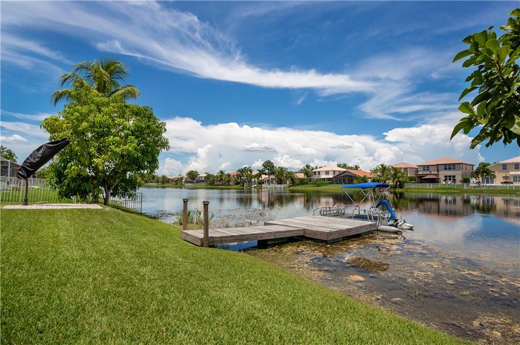 GORGEOUS TWO STORY HOME WITH FOUR BEDROOMS, PLUS AN OFFICE, POOL AND LAKE IN THE GATED SECTION OF SILVER LAKES! OVERSIZED BACKYARD, A SCREEN ENCLOSED PATIO WITH POOL, AND A PRIVATE DOCK ON THE LAKE! THE INSIDE OF THIS HOME FEATURES MARBLE FLOORING ON THE LOWER LEVEL AND WOOD LAMINATE FLOORING ON THE STAIRS AND UPPER LEVEL. UPGRADED KITCHEN WITH NEWLY FINISHED WHITE MODERN CABINETRY, GRANITE COUNTERTOPS, DECORATIVE BACKSPLASH AND STAINLESS STEEL APPLIANCES. A/C IS BRAND NEW! HOME IS PROTECTED BY ACCORDION SHUTTERS & SECURITY CAMERAS.