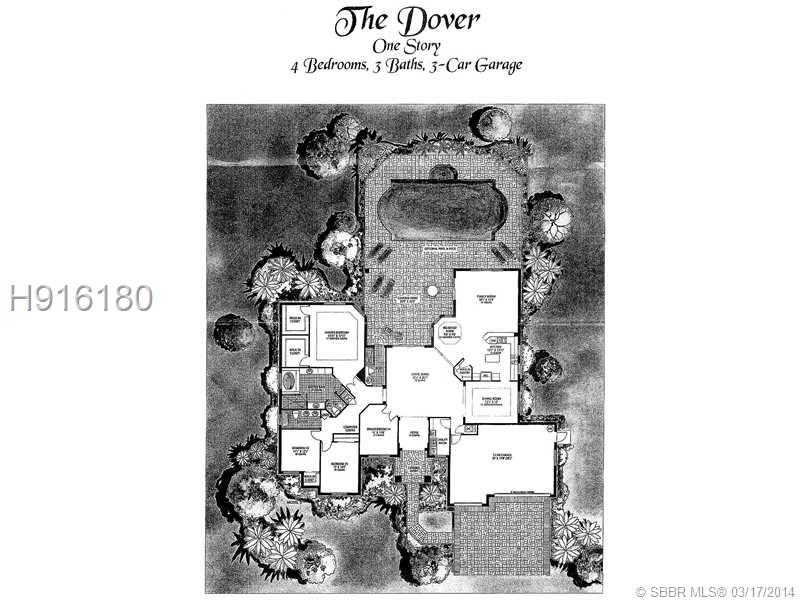 The Dover is a 1 Story, 4 Bedrooms, 3 Baths, 3-Car Garage home that sits on over a 35,000 sq ft lot on the Lake in a Gated Community. The residence features, Interlocking Pavers Driveway, Crown Molding, Wood Floors in Master Bedroom, Ceramic Tile Through out, French Doors, Screened Patio with Brick Pavers, Custom Window Treatment, Granite Counters in the Kitchen, Maytag Stainless-Steel Refrigerator, Frigidaire E-Range , Microwave and Dishwasher, Split AC System, Accordion Hurricane Shutters and more.