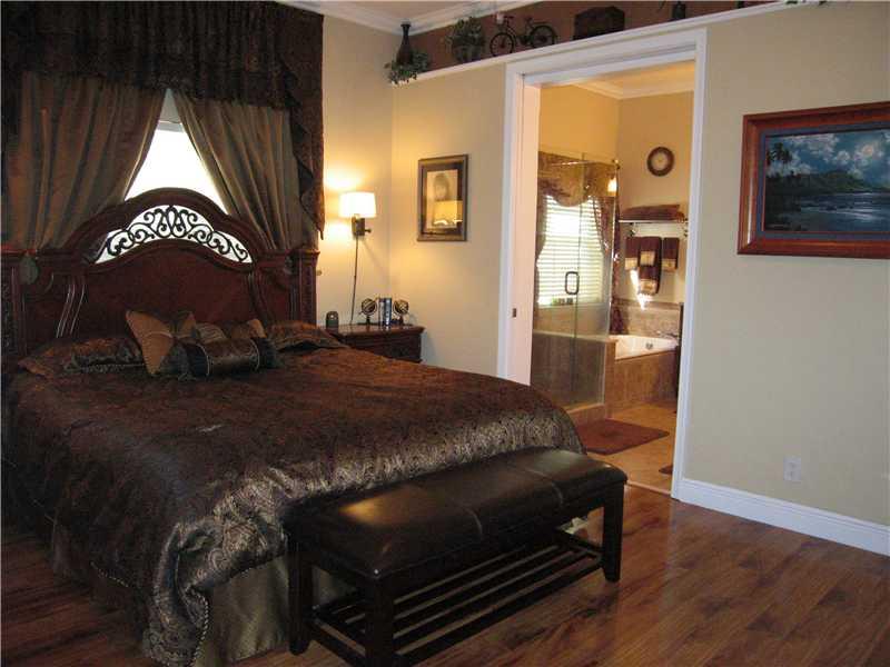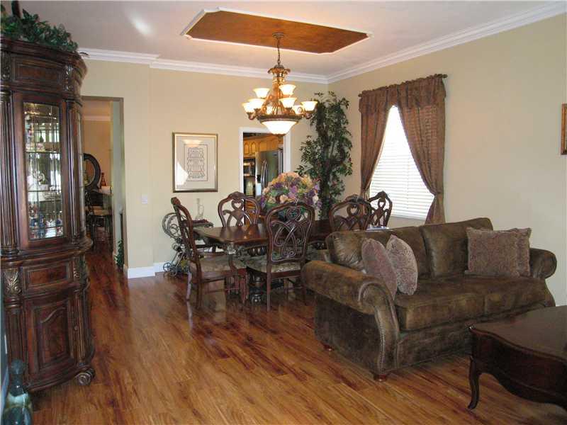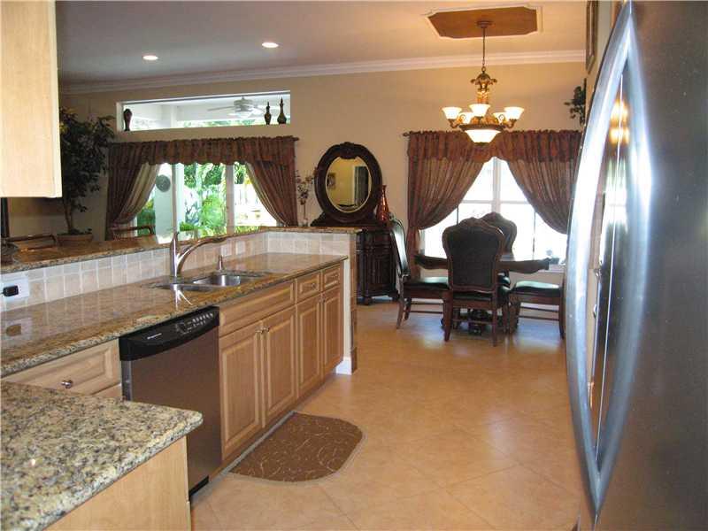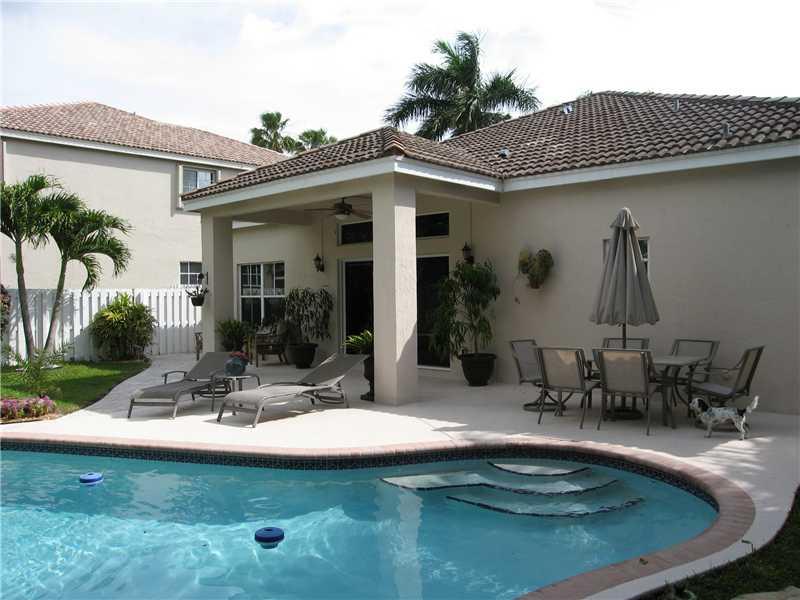 Gorgeous and updated pool home with a private tropical yard! Freshly painted, crown moldings, laminate wood floors in all bedrooms, hallways, family room, living & dining rooms. Newer Stainless Steel appliances in kitchen, granite counter tops. Remodeled bathrooms & decorator light fixtures. Fenced back yard with open pool, covered patio & rock waterfall into pool. Built-in garage cabinets. Hallway granite ledge. Fountain in front yard. A/C replaced 2013. New baseboards! Shows like a model!