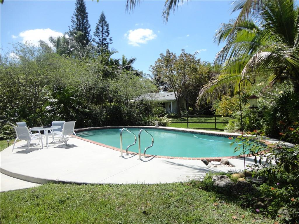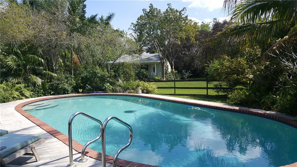 This beautiful acre home is very private and lushly landscaped it features new Impact windows and doors, oversized pool, separate two car garage/work shop , 2 stall barn and 2 car carport. Large open floor plan, Family room with wood burning fireplace, gorgeous remodeled 2 bathroom, screened patio, large indoor utility room, Mango, Lemon, key lime trees. Newer deep well and water filtration system, new roof on the work shop, This home is located on the Davie trail system Horses welcome