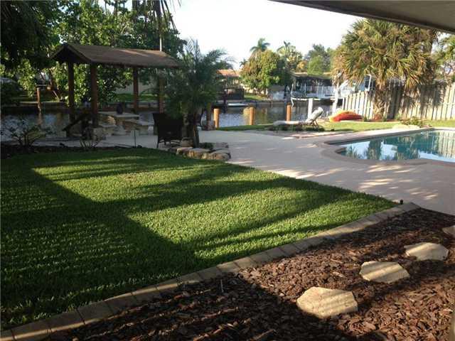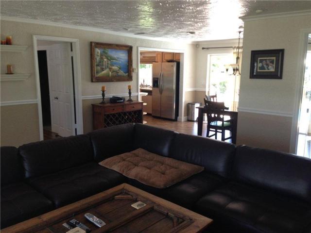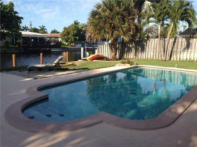 Not just a great house, but a gorgeous backyard! You feel like you're on vacation every day! 76' waterfront & a big gorgeous dock, lushly landscaped with pool, fire pit & covered entertaining area. Updated kitchen with water view & attached laundry rm/but ler's pantry with extra storage. Great master with private den/office & updated bath. Tiled floors with sliding glass doors from dining room to awesome views. Great 2nd/cabana bath with Jacuzzi! Stamped concrete driveway, oversized parking. Cul-de-sac!