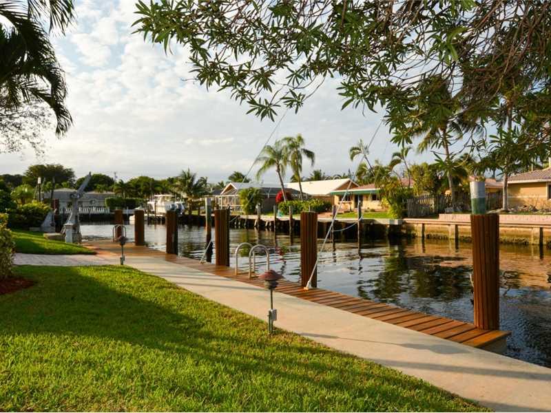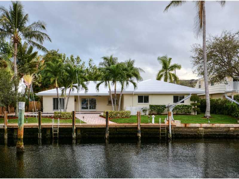 Classic, well maintained waterfront ranch home in prestigious Coral Ridge Country Club less than one block from Intracoastal. Great opportunity to be in one of the most desirable waterfront locations. No fixed bridges, ocean access, 85 feet of waterfront with 48 foot dock with electric and lift. Floor plan perfect for entertaining, family life. Marble floors, granite counters, stainless appliances, brick driveway. Walking distance to park, close to beaches. Live waterfront lifestyle at a great price.