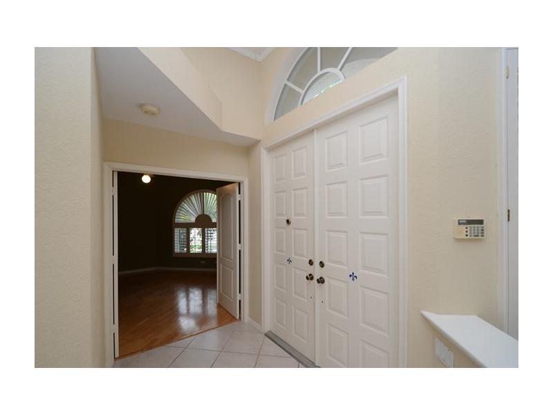 PRESTIGIOUS COMMUNITY; PRIVATE, LARGE LAKEFRONT LOT AND SPLIT FLOOR PLAN HOME SUPERB FOR LIVING AND ENTERTAINING - IT'S ALL RIGHT THERE. LAKE VIEWS FROM ALMOST EVERY ROOM, PLANTATION WINDOW SHUTTERS, VOLUME CEILING IN LIVING AREAS, FAMILY ROOM WITH CUSTOM SHELVES/CABINETS PROVIDE ELEGANCE AND FUNCTIONAL STORAGE, EFFICIENT, TWO-ZONE A/C SYSTEM, SCREENED PATIO, HEATED POOL WITH SAFETY GATE, HURRICANE SHUTTERS AND DESIRABLE THREE-CAR GARAGE. A+ RATED SCHOOLS!