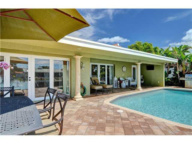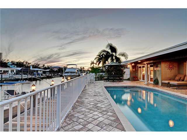 Watch the boat parade from the pool deck of this stunning remodeled open floor ocean access deepwater with direct ICW views. Home boasts two en suites,walut floors. Fabulous custom designed chef's kitchen with antique maple wood cabinets, granite counters , tumbled stone backplash, SS appliances, expansive island with wine cooler, Impact French doors, 2 zone a/c. Immaculate mexican tile, newer roof and 50' dock with electric, lush landscaping, sought after southern exposure,Cul De Sac street. A MUST SEE!