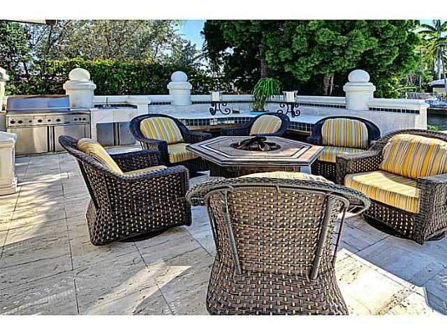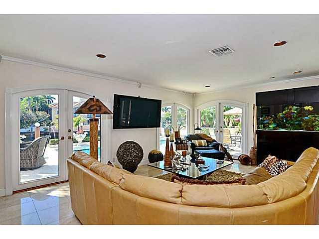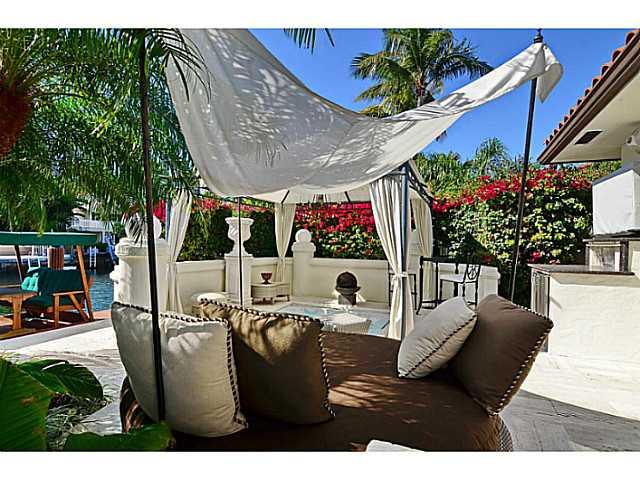 GORGEOUS year round entertainment house!!Fabulous 3 BDRM 3 Bath 2 1/2 baths courtyard style floor plan opens onto spectacular outdoor living area - pool,hot tub & summer kitchen!Dock your yacht on deep water 100' dock -only minutes to ocean w/NO fixed bri dges!Impeccably maintained residence w/lush tropical foliage framing entire home!Botanical haven!!Exquisite interior features: marble flrs,crown moldings & 13 sets of arched French doors. Gourmet kitchen ajoins family room. His AND hers master bathrooms.