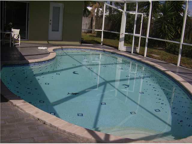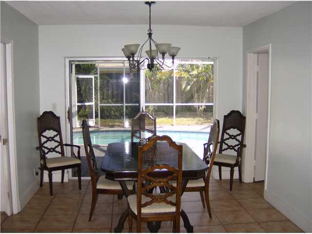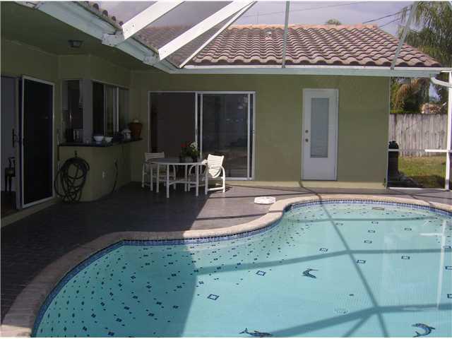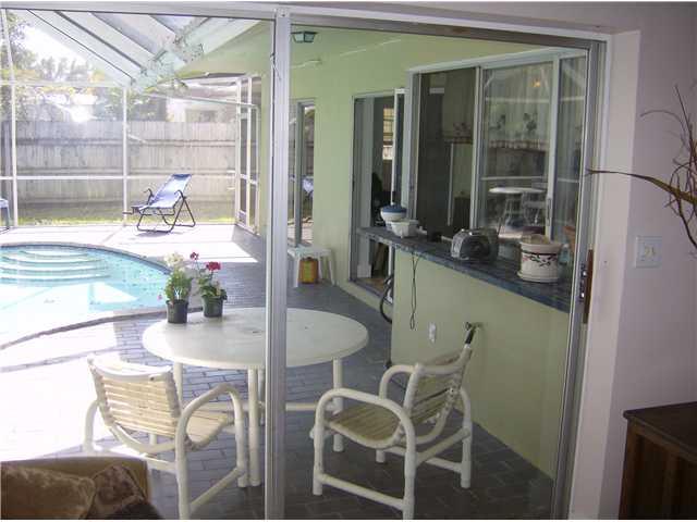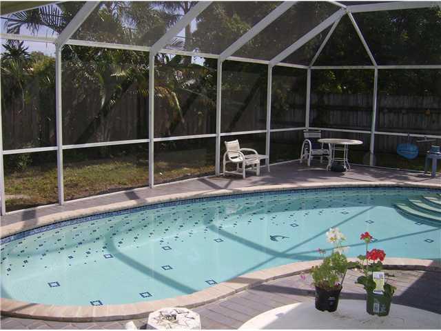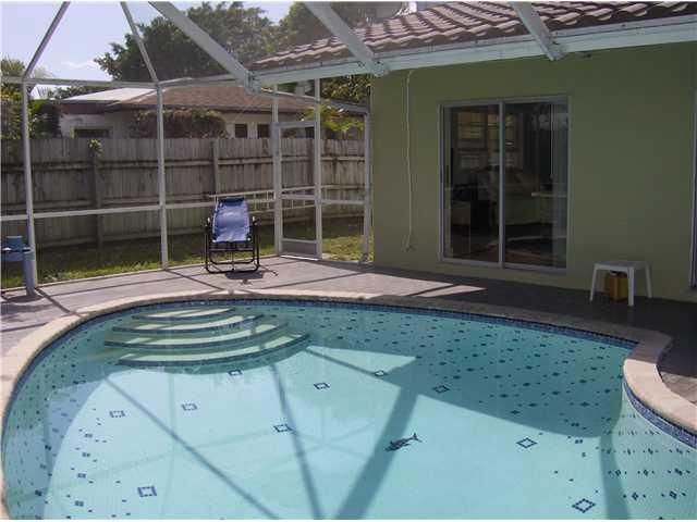Beautiful 3 bedroom 2 bath pool home located in great east of federal hwy neighborhood. This home has almost 1700 sq ft under air, large living and dining areas and kitchen opens to family room. Sparkling kidney shaped pool with screen enclosure and caban a style bath that leads back in to home. 3 sliding doors and a pass-thru window from kitchen also compliment the relaxing pool area. This home sits on an 8000 sq ft lot that is fully fenced and has a 2 car garage and circular drive..