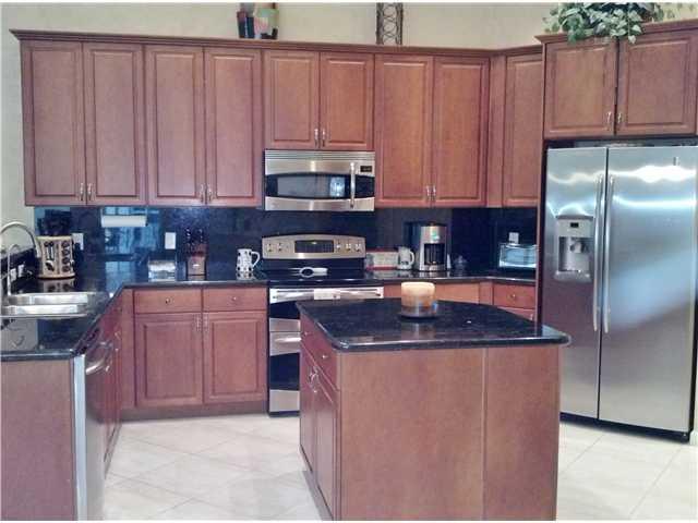Stunning Weston Hills home w/great triple split floor plan*5th bedrm is large study w/bay & transom windows*custom, subtle faux painting enhances living areas*open kitchen w/granite & wood cabinets, island, chef's desk* volume tray ceilings*neutral stonel ook tile*spacious master w/tray ceiling*separate guest bed/bath w/private pool access*wide covered patio overlooks pool w/waterfalls*recently painted inside & out*new A/C & H20 heatr in 2011*surround sound in family*prime Weston location-see it today!