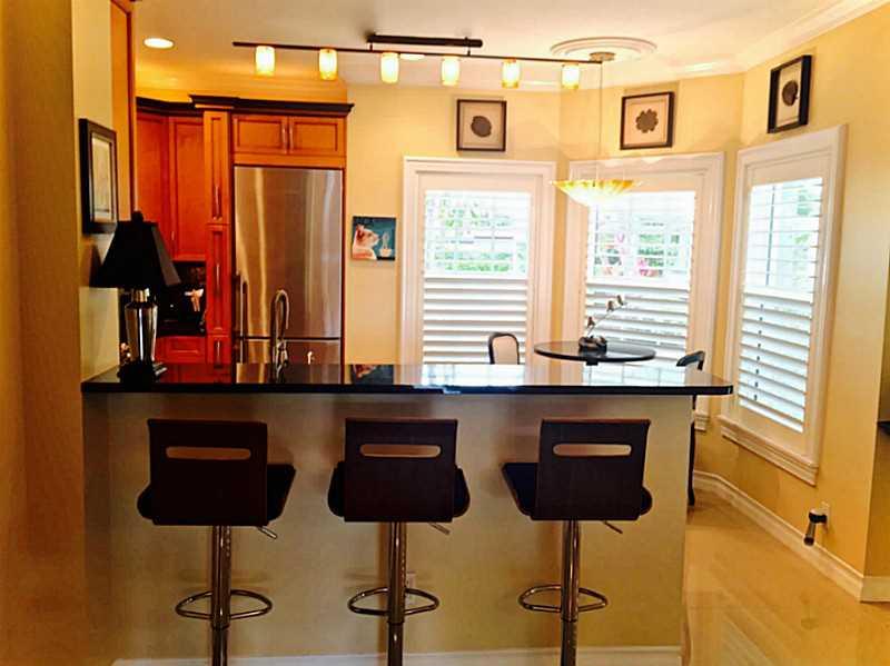 FLORIDA WATERFRONT LIVING AT ITS FINEST! Exquisite designer-updated corner townhome boasts river & pool views. Open floorplan, gourmet kitchen w/ high-end cabinets, granite and ss appliances, gleaming 20" tile, hardwood, new ac, tankless water htr, front- load w/d, impact windows/balcony & patio sliders. Sparkling baths/vanities, M Bath w/double shower glass encl. Dock (up to 22' boat) w/ ocean access, tropical landscaping, covered parking, plenty of storage. Walking distance to Wilton Dr. You''ll love it