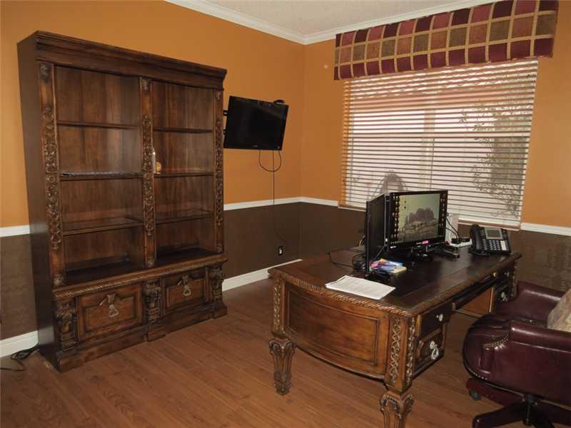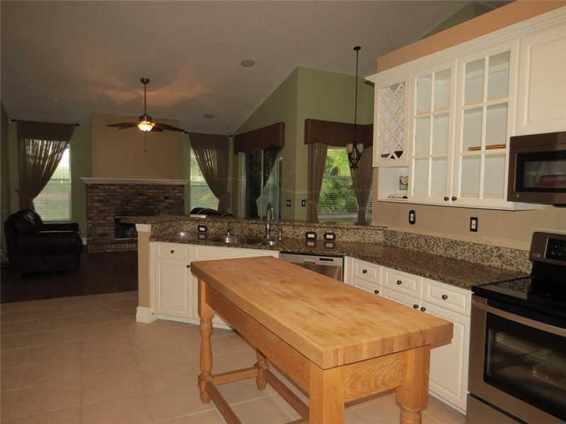 Beautifully maintained home backing up to 102 acre Pine Island Ridge. With no neighbors behind you, enjoy views of live oak trees and walk the nature path leading to 243 acre Tree Tops Park. Featuring a split floor plan with volume ceilings, 4 bedrooms + den/office or 5th bedroom. Kitchen with granite & stainless steel, volume ceilings & brick fireplace. Tile and wood laminate throughout. Pool remarcited 2013, gorgeous travertine deck, new gutters 2012, A/C 2009, Roof 2006. This is a wonderful home!